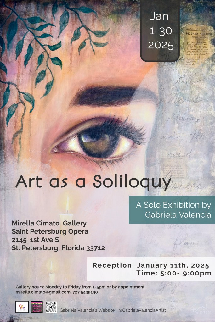 The exhibition Art as a Soliloquy reflects Gabriela’s personal journey, where each piece serves as a visual dialogue with her inner thoughts. Like a soliloquy, the artwork invites the viewer to engage with her reflections on identity, humanity, and the environment, creating a powerful and intimate connection between the artist and the audience.